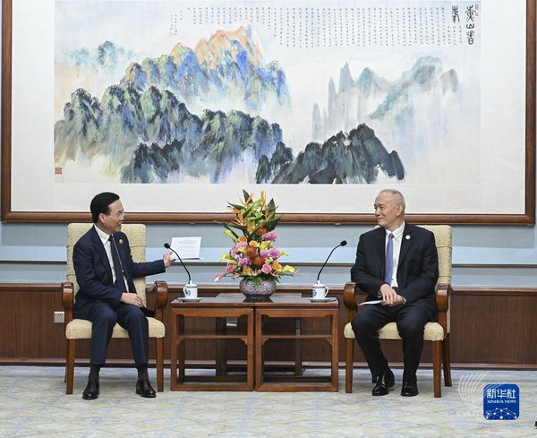 2023年10月19日,中共中央政治局常委、中央书记处书记蔡奇在北京分别会见越南国家主席武文赏。